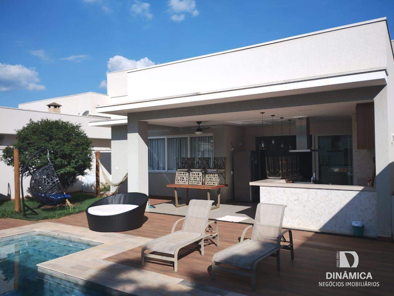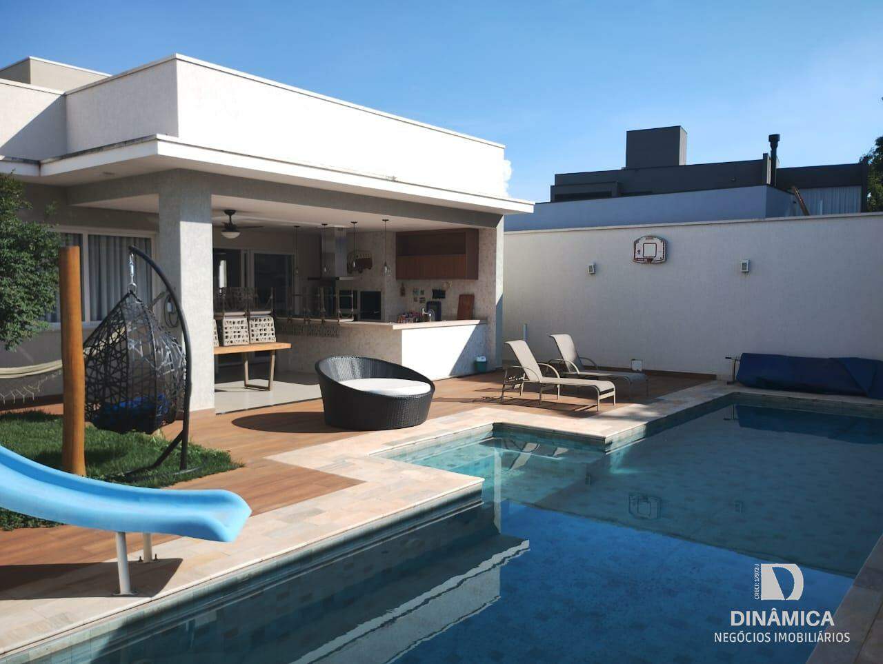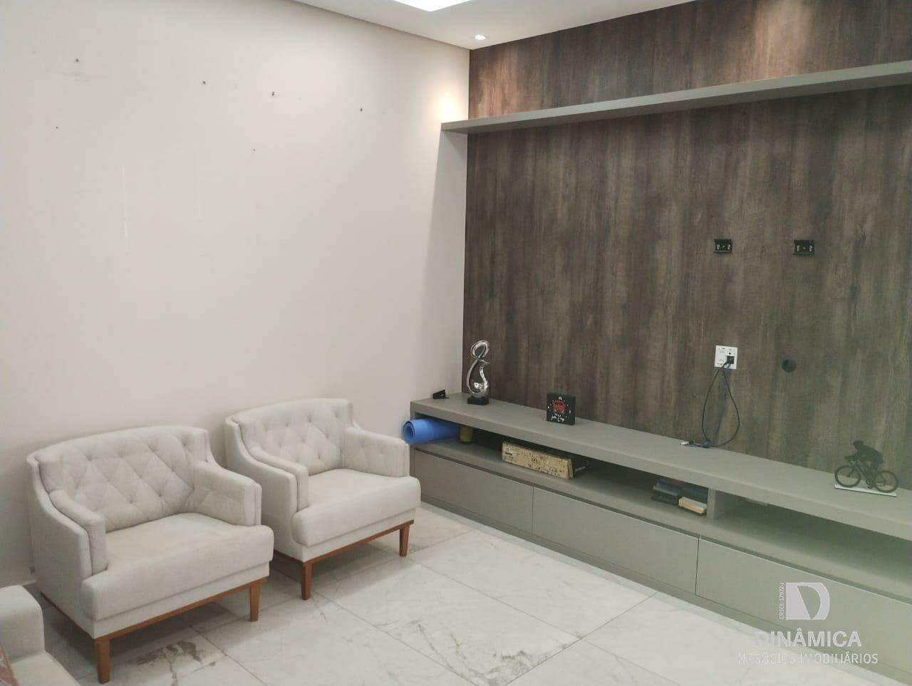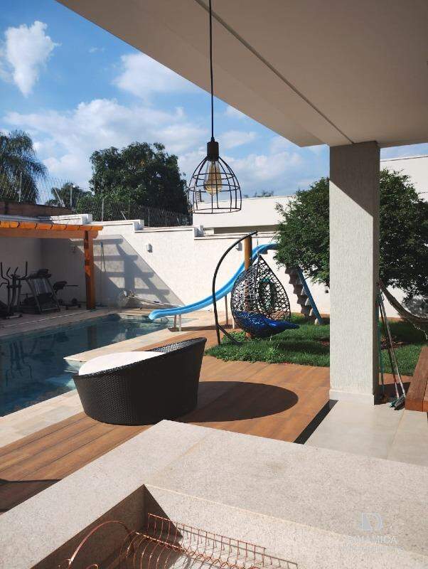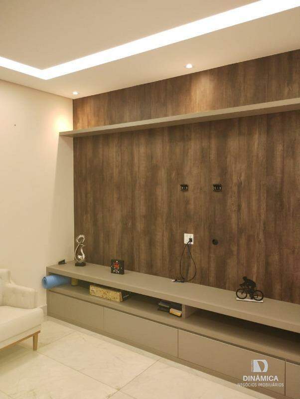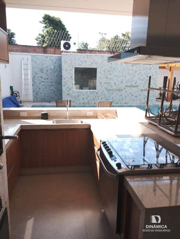 Casa com fino acabamento contendo 03 suítes sendo 01 com closet;, sala de estar, lavabo, cozinha planejada, sala de TV, sala de jantar, área de serviço com armários, despensa com armários, academia, piscina, sauna, área de lazer com churrasqueira e armários. Banheiro externo.